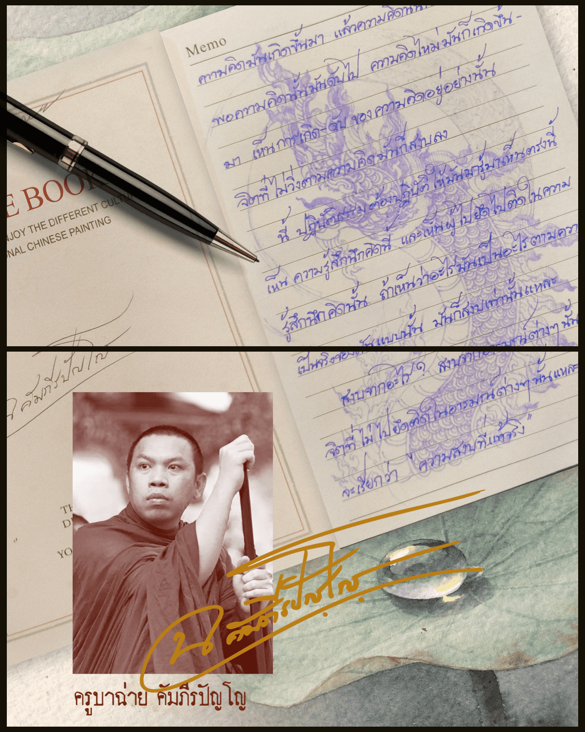 สมุดบันทึกเล่มนี้ ได้ทำการบันทึกโดย ครูบาฉ่าย คัมภีรปัญโญ เมื่อสมัยที่ท่านยังจำพรรษาอยู่ที่ วัดถ้ำนมผา จ.อุดรธานี